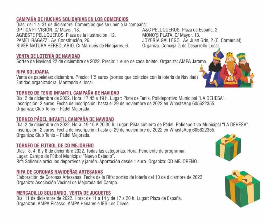 ACTIVIDADES PARA LA CAMPAÑA DE REYES EN MEJORADA DEL CAMPO 2022-2023