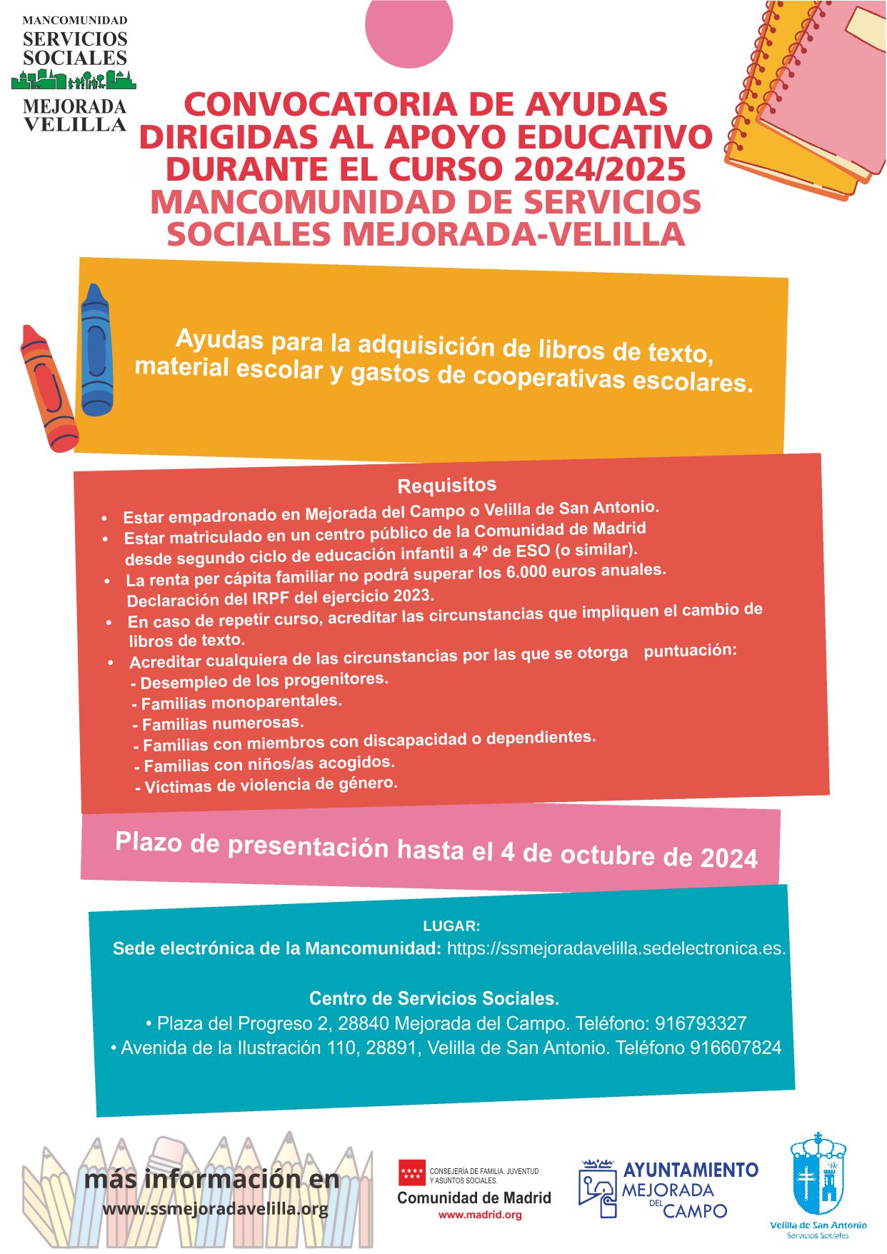 • Sede electrónica de la Mancomunidad https://ssmejoradavelilla.sedelectronica.es/info.0CONVOCATORIA DE AYUDAS APOYO EDUCATIVO 2024
