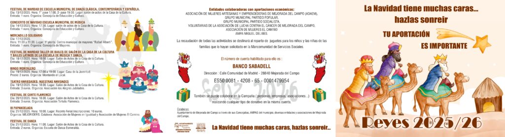 Otro año más la sociedad mejoreña se une a esta campaña solidaria para que ningún niño o niña se quede sin difrutar de un juguete en una época tan señalada. La Navidad llega con el color y el dinamismo que llena la localidad de un gran número de actividades realizadas por las entidades sociales y las áreas municipales.