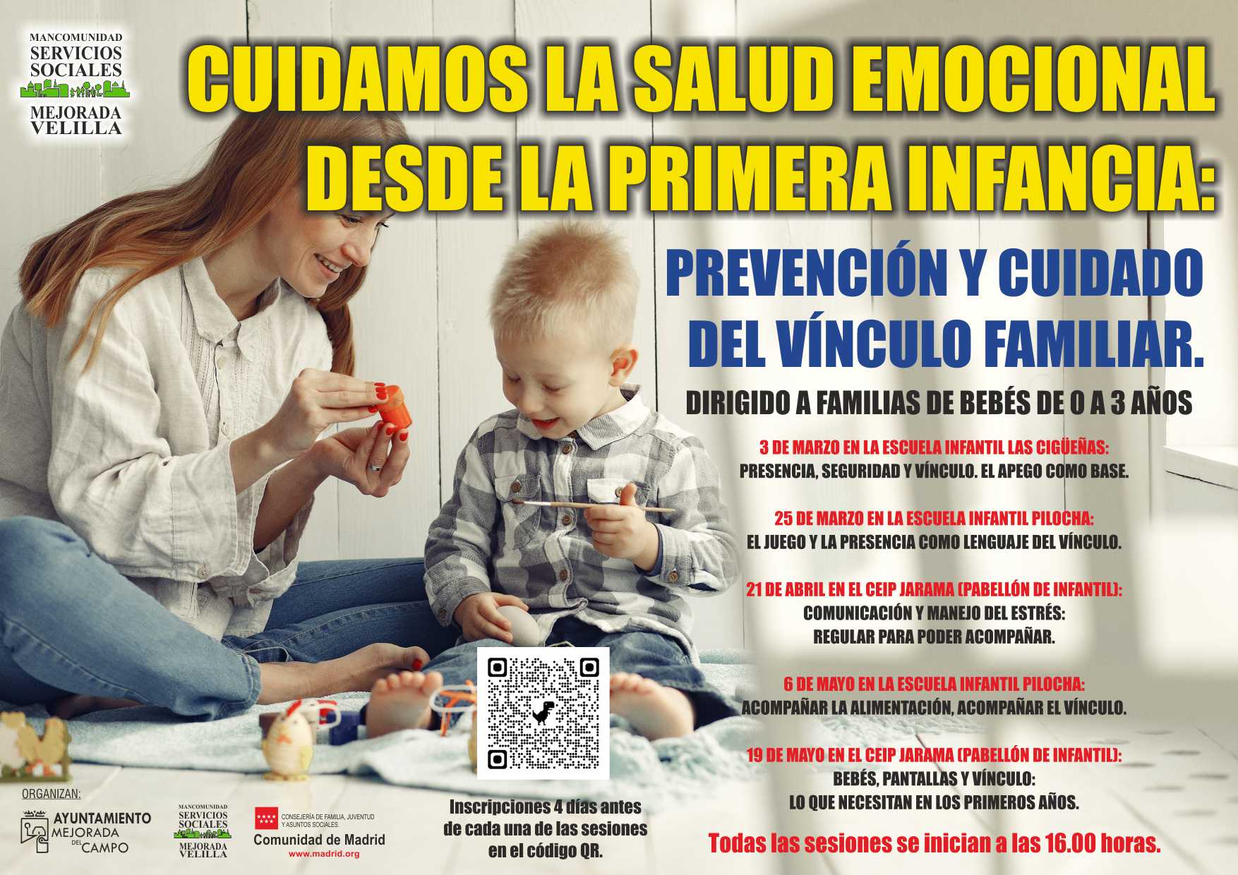 - 19 de mayo en el CEIP Jarama (pabellón de infantil): Bebés, pantallas y vínculo: lo que necesitan en los primeros años.