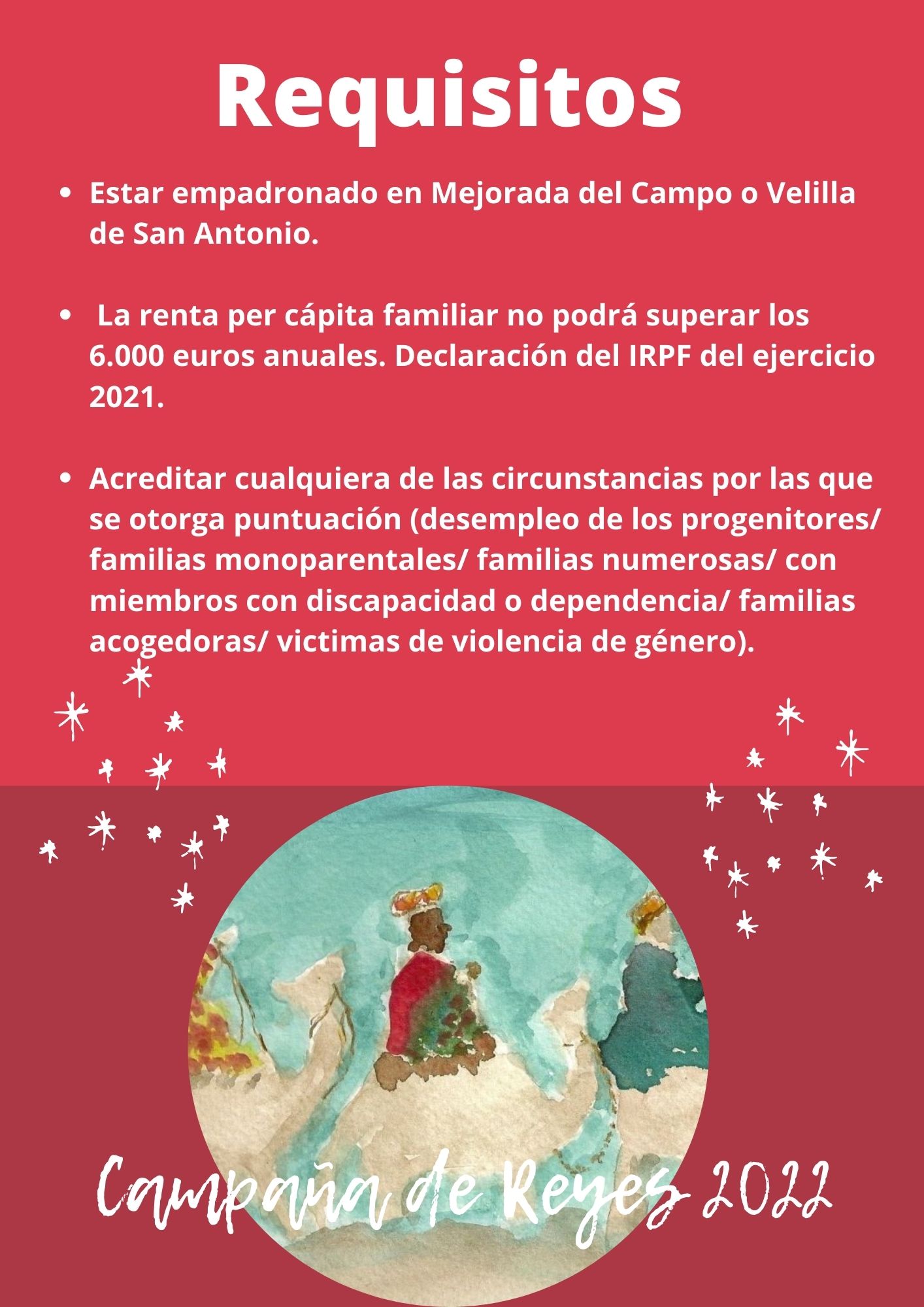 Estar empadronados/as en Mejorada del Campo o Velilla de San Antonio.