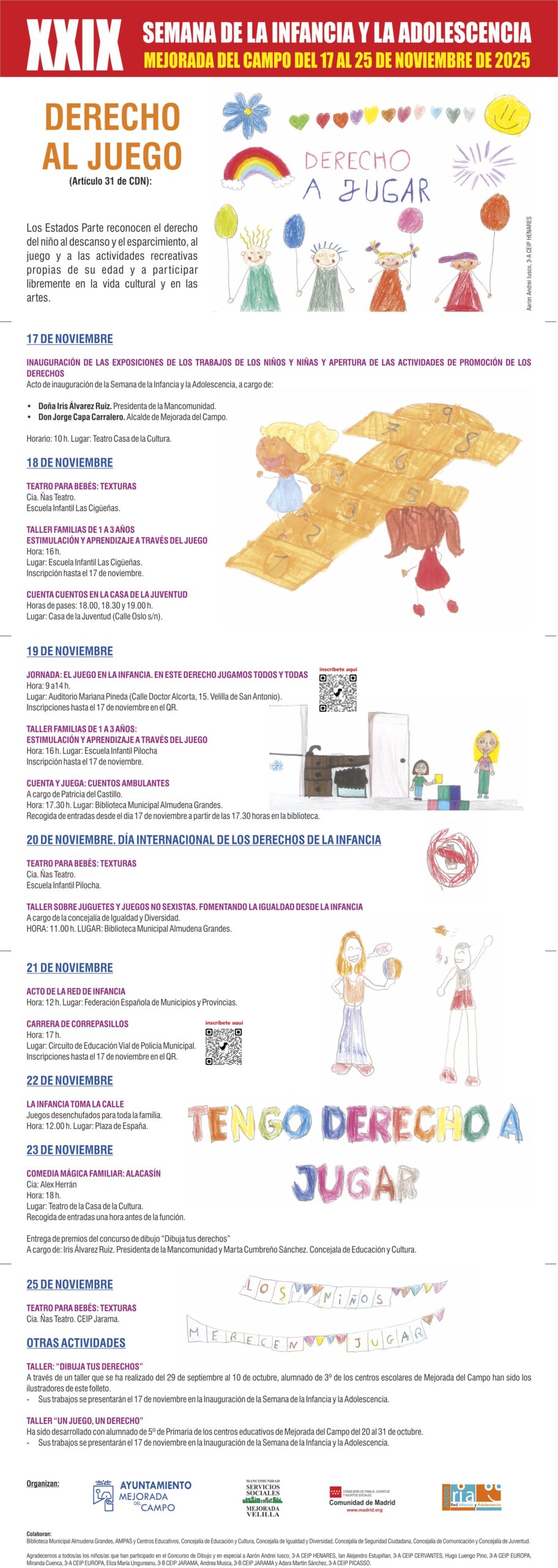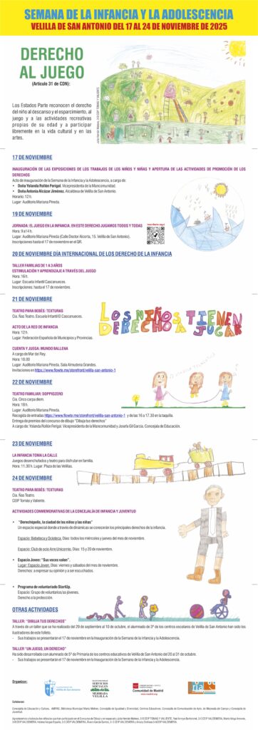 Un gran número de actividades en Mejorada del Campo del 17 al 25 de noviembre y en Velilla de San Antonio del 17 al 24 de noviembre.
